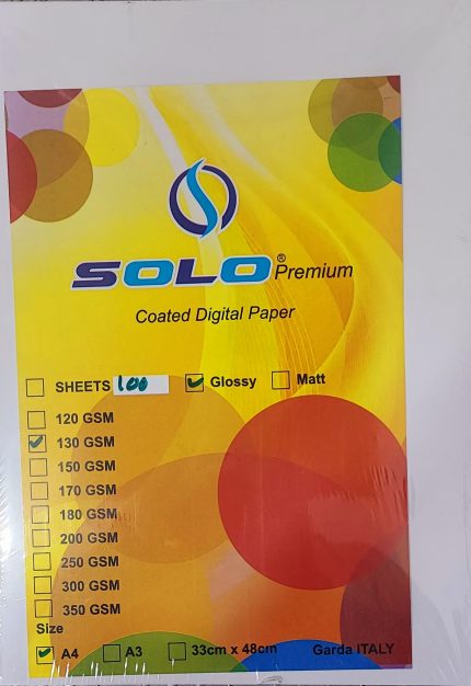 SOLO A4 COATED DIGITAL PAPER GLOSSY 130 GSM (100 SHEET PACK)